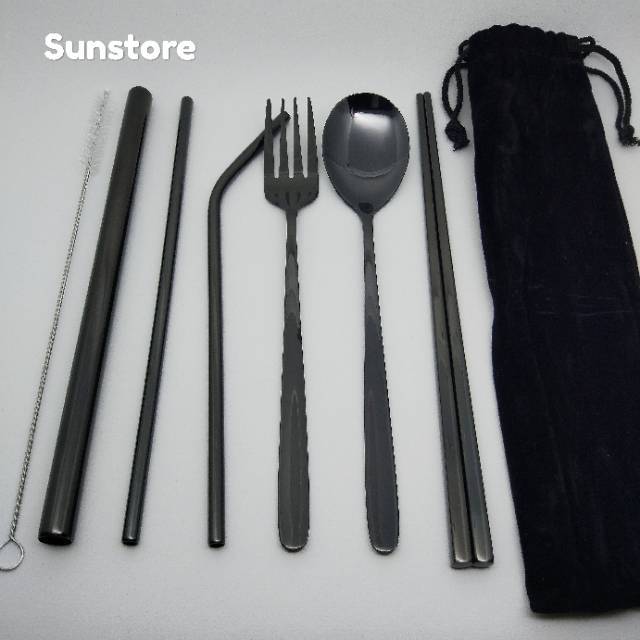 Biasanya, dalam satu set, sudah ada sendok, garpu, pisau, hingga sumpit dan sedotan.