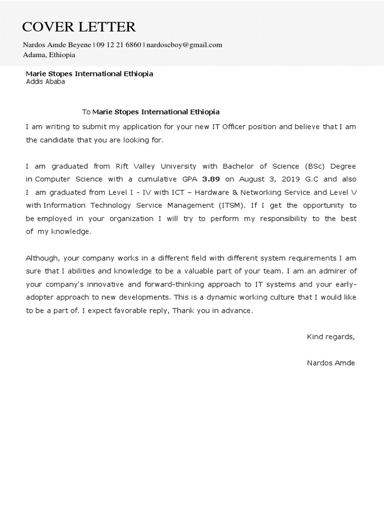 37+ inspirational photos Job Application Letter Sample In Ethiopia Pdf : Pin By Shiela Mary Braga On Resume Engineering Resume Templates Engineering Resume Civil Engineer Resume - If you have an excellent job application letter, it means that you excel in form of communication which is writing.. Motivation letter for job is also known as the letter of motivation for employment, motivational letter for job offer, etc. Cover letter examples for all types of professions and job seekers. Keep also mind that you only have brief seconds in order to impress your interviewer with your letter that is why you have to 9+ employee reference letter examples & samples in pdf. Paper revised and updated 25th february 2019 this part of my discussion particularly focusses on the immense role of the imperial bodyguard music band, the first of its kind in ethiopia. You might have heard about this term but may not be aware of it, here we are going to understand the motivation letter in deep and will also understand how to write one accurately.